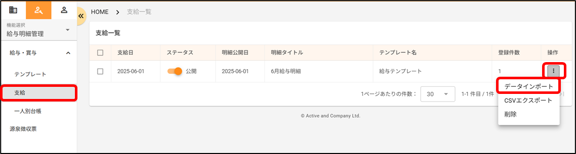 給与明細は一括で何件までアップロードできますか? 2025年08月12日 07:30 更新 給与明細は一括で1,000件までアップロード可能です。給与明細用の給与データが1,000件より多い場合は、CSVファイルを複数に分けてインポートを行ってください。例)従業員数 2,000名様の場合①CSVファイル(1~1000名分)②CSVファイル(1,001~2,000名分) 2つのCSVファイルを作成し、[給与明細管理>給与・賞与>支給>︙]の[データインポート]より、それぞれインポートをお願いいたします。