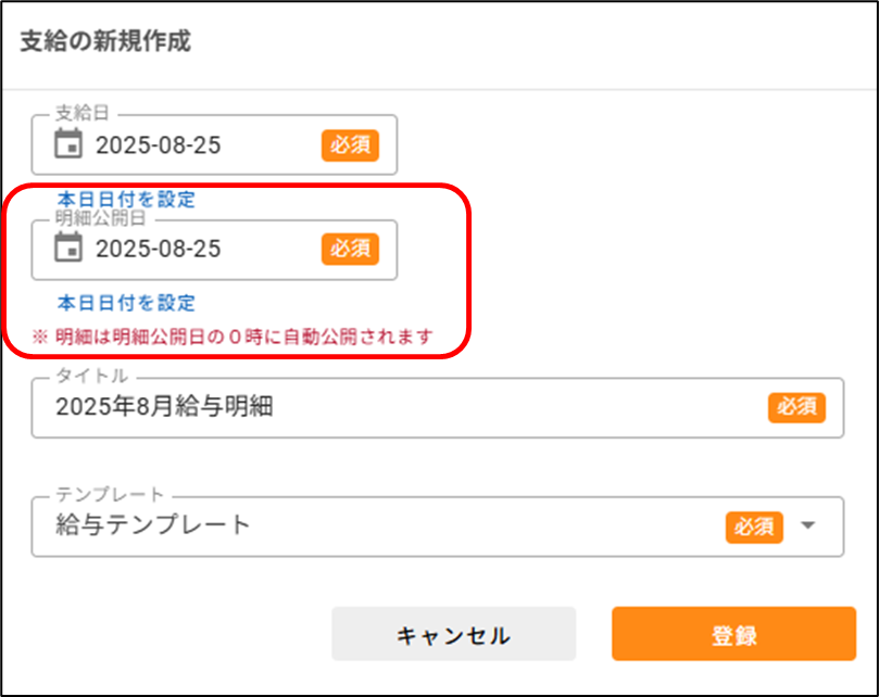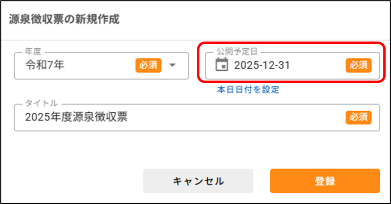 社員が閲覧する給与明細・源泉徴収票の一覧は、どの順序で表示されていますか? 2025年08月12日 09:12 更新 下記のルールに則って、表示順が決定されます。ルール1給与明細の「明細公開日」および源泉徴収票の「公開予定日」にもとづいて、新しい日付のものが上に表示されます。ルール2給与明細と源泉徴収票の日付が同じ場合は、給与明細が上に表示されます。ルール3給与明細と給与明細、源泉徴収票と源泉徴収票の日付が同じ場合は、後に登録したものが上に表示されます。 以下給与明細の「明細公開日」と源泉徴収票の「公開予定日」の画像イメージです。▼給与明細の「公開予定日」▼源泉徴収票の「公開予定日」